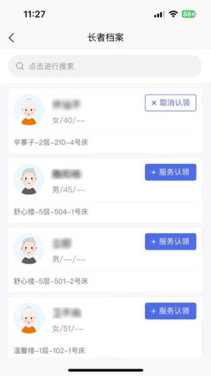 6、通过取消认领功能管理入院老人信息的认领情况。