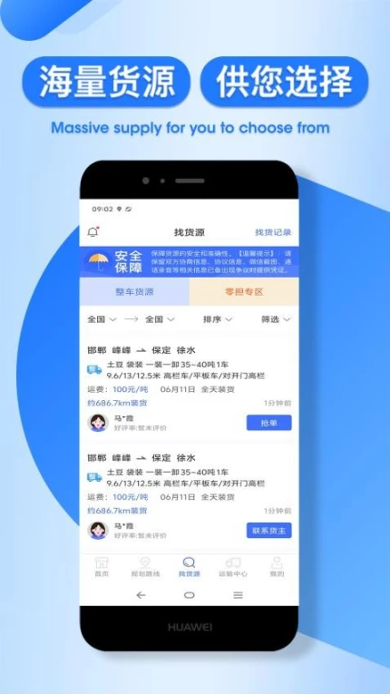 支持实名认证,保障运输货源的安全可靠,让司机和货主都能放心使用平台进行交易。