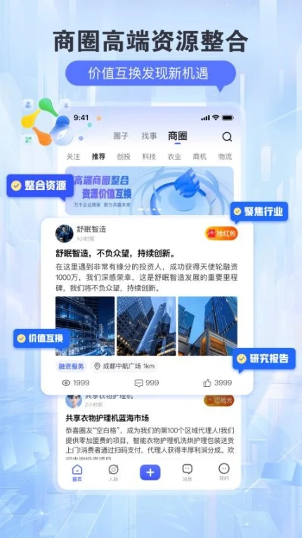 商圈中有大量发布内容,用户可自由选择和获取海量资源信息,拓展业务渠道。