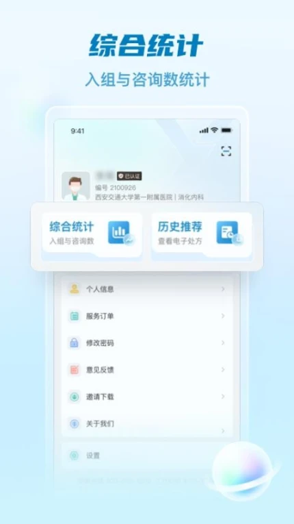 为医生精准统计办公数据,如患者数据、订单处理情况等,使工作情况一目了然。