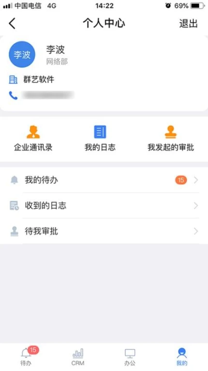 群艺CRM手机版集聊天、业务办理、日程管理、考勤等多种功能于一体,能满足企业多样化办公需求,助力企业高效运营。