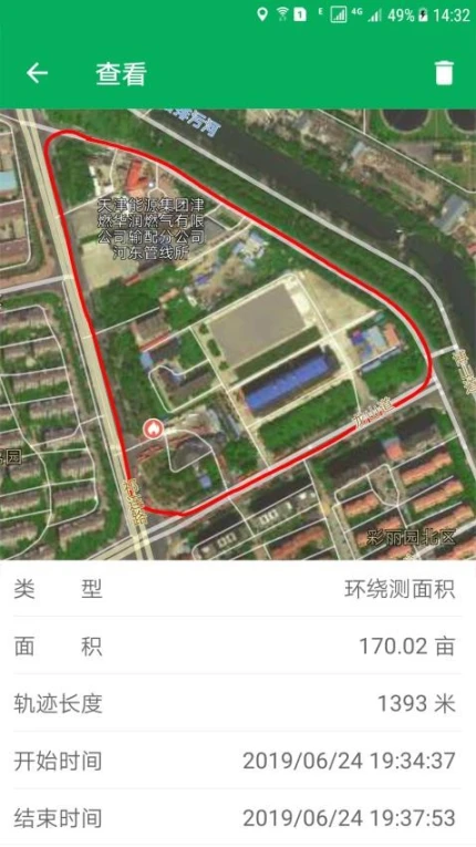 4、查看测量结果,能看到土地面积、轨迹长度等信息。