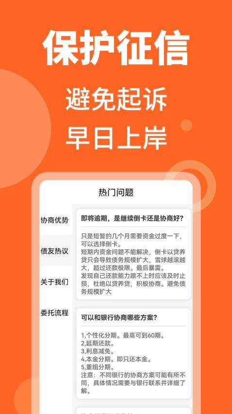 债帮帮官方版是一款专注于债务问题处理的工具,涵盖信用卡、网贷及企业贷等场景。用户可实时查看负债详情,获取专业咨询建议,通过平台与金融机构协商还款方案。系统提供隐私保护机制,确保个人信息安全,同时通过合理规划帮助用户重建信用记录。