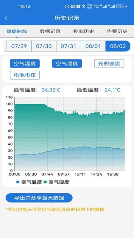 5、数据导出:点击【历史记录】选择时间段生成Excel报表,支持邮件发送与云端存储。