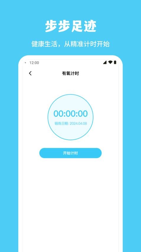 1、打开应用点击「开始计时」启动有氧运动模块,系统自动记录运动时长。