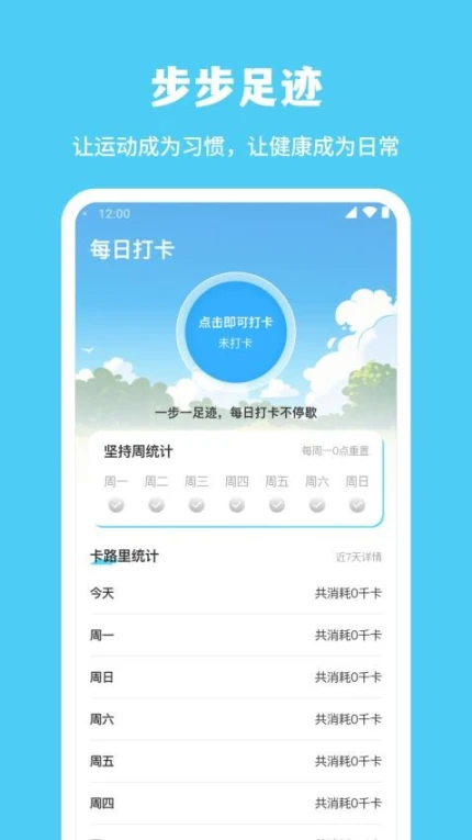 蓝天下载站为您免费提供步步足迹官网版下载。这款生活实用类应用以健康管理为核心,支持用户实时追踪行走距离、步数及有氧运动时长,通过智能算法计算卡路里消耗。平台提供每日打卡功能,帮助用户养成运动习惯,智能计步系统精准记录健康数据,用户可随时查看成就进展。官网版v1.0.6优化了数据统计模块,新增成就系统激励用户持续锻炼。