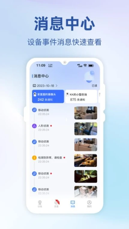 3.消息通知:提供监测画面的通知信息服务,用户可及时查看最新的通知消息,掌握设备动态。