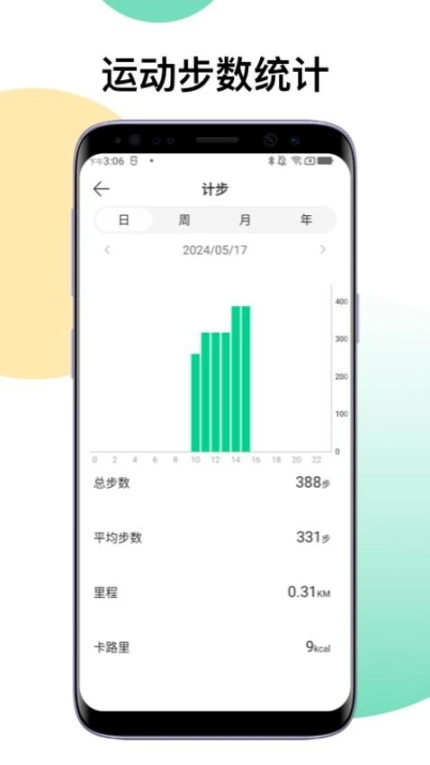 2.步数统计:实时统计用户的运动步数,用户可随时查看自己的运动情况,激励自己积极运动。