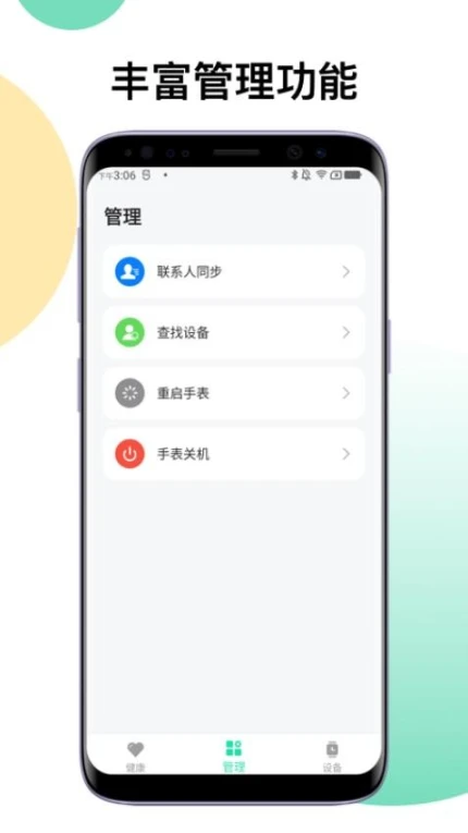 2.功能多样:集健康管理、步数统计、通讯、设备查看等多种功能于一体,满足用户多元需求。