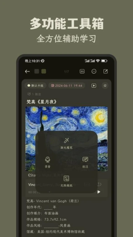 1.多维记录体系:支持文本、音频、图像混合编辑,实现全场景知识捕获 2.智能检索系统:通过语义分析技术快速定位关联知识点 3.动态间隔算法:基于艾宾浩斯遗忘曲线自动规划复习节点 4.格式兼容方案:支持16种主流文档格式导入导出 5.题型生成引擎:涵盖选择/填空/论述等12种标准题型模板