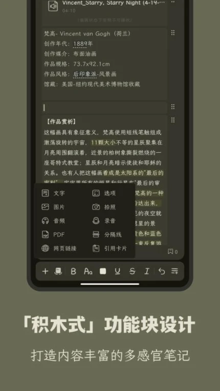 1.轻量化架构:仅需80MB安装包即可实现专业级知识管理 2.隐私保护机制:本地加密存储+生物识别双重防护 3.跨平台同步:支持Android/iOS/Web三端数据实时互通 4.学习效能分析:生成个人知识图谱与学习效率报告 5.扩展开发接口:开放API支持第三方插件生态建设