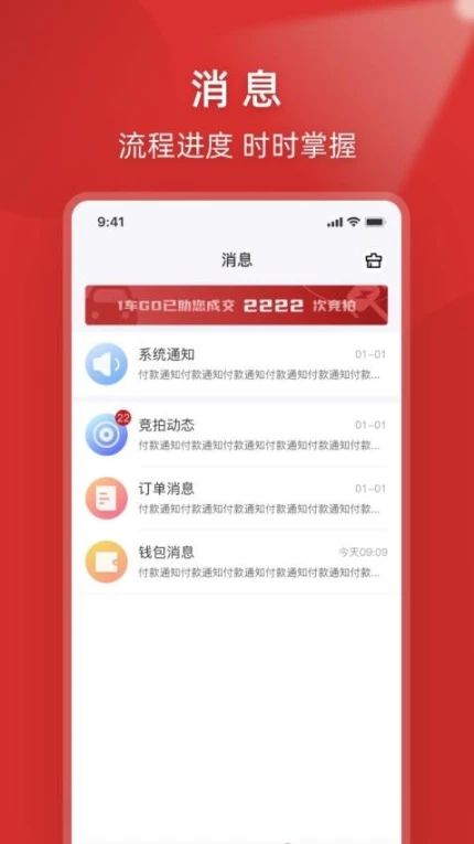 2.流程跟踪:全程跟踪竞拍与订单流程,让用户实时掌握交易进度,交易更安心。