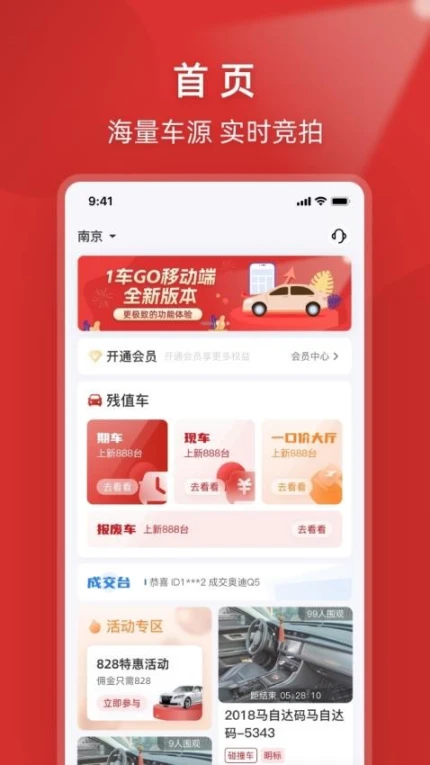 2.活动专区:展示各种活动信息,用户可参与活动竞拍心仪车源。