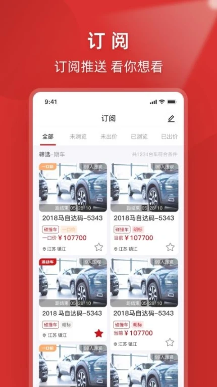 4.订阅管理:在线订阅感兴趣的车源,随时查看车源状态与最新信息。