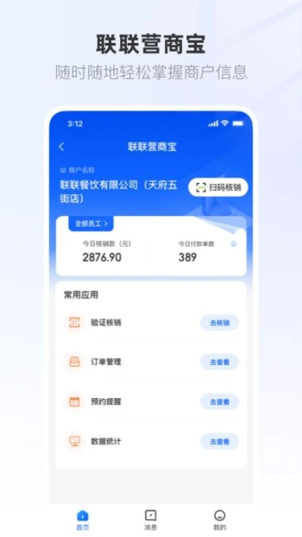 联联营商宝app是一款专注于商户服务的综合性管理工具,涵盖合同签署、核销处理、财务提现等全流程功能。其工作台模块整合了订单管理、门店设置等基础操作,支持商户随时调整营业时间或查看收益明细。数据统计功能可生成可视化图表,帮助用户掌握营销趋势与客群特征。平台新增的切换店铺功能与财务角色权限管理,进一步提升了多店协同效率,核销统计模块优化则缩短了对账周期。