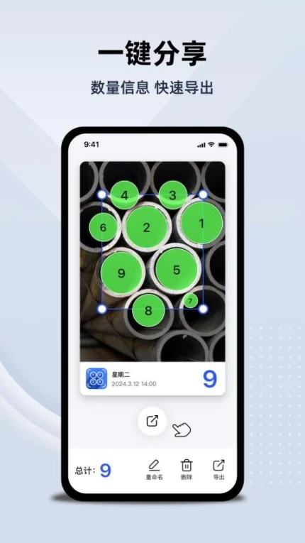 蓝天下载站为您免费提供彩豆数数相机最新版下载,这是一款专为高效计数需求设计的智能工具软件。通过拍照识别技术,用户可快速完成钢管、原木、钢筋等物体的精准清点,支持一键分享与导出功能,有效提升工作场景的数字化效率。平台依托多模型算法优化,实现复杂场景下的物体数量统计,满足建筑、仓储等行业的精细化管理需求。