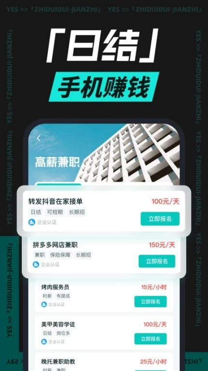 支持按小时计薪、项目制结算、全勤奖励等多种薪酬方式,用户可自由选择周末兼职、晚间工作等灵活时段。