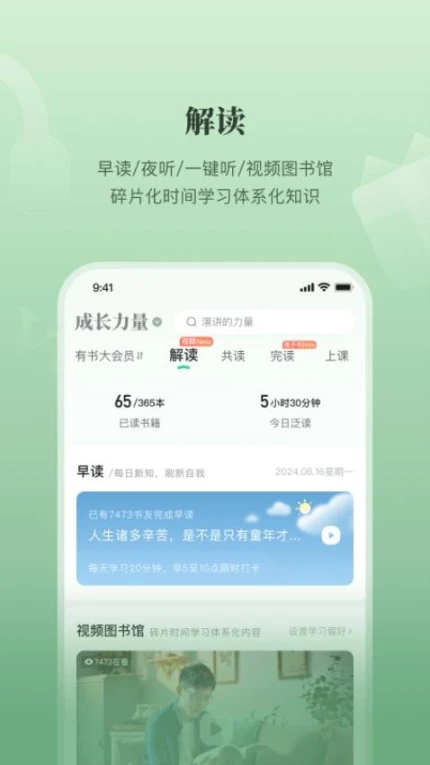 整合出版社正版资源与UGC创作内容,建立包含导读视频、思维导图、读书笔记的立体化知识体系,单月新增优质内容超3000册。