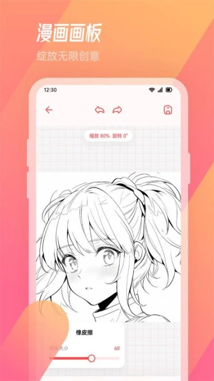 1.漫画画板,打开画板运用工具绘制喜欢的图案,自由发挥创意,开启漫画创作。