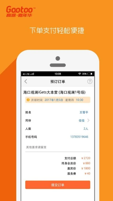 具备行程展示、球场推荐、在线预订等多种功能,全方位服务于高尔夫运动预订。