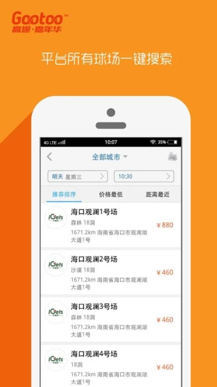 整合多个城市的高尔夫球场资源,让用户有更多的选择空间,满足不同的需求。