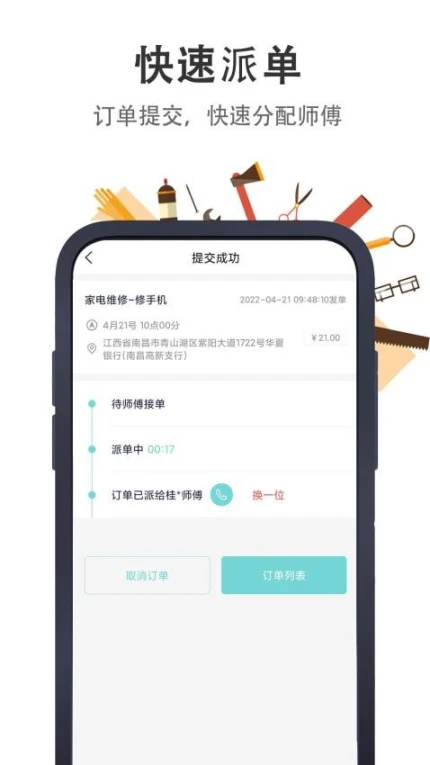 2、匹配精准,依托先进算法,为用户精准匹配附近专业师傅,服务更有保障。