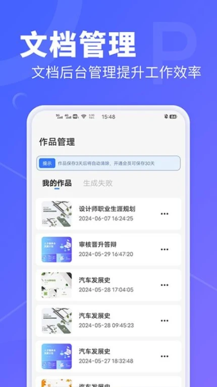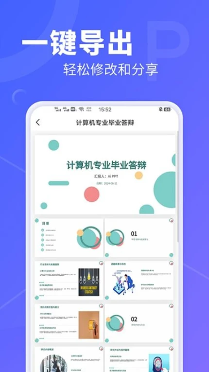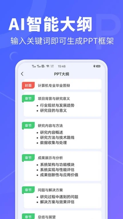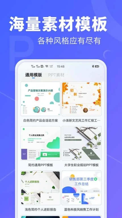 AiPPT官网版是一款专注于智能PPT生成的系统工具应用。其核心功能包括关键词搜索、模板选择、智能大纲生成及素材管理。用户输入简单信息即可自动生成结构清晰的PPT框架,结合内置的办公素材库与模板库,可快速完成内容填充与排版设计。文档管理系统支持作品分类存储,导出功能兼容多种格式,满足不同场景使用需求。