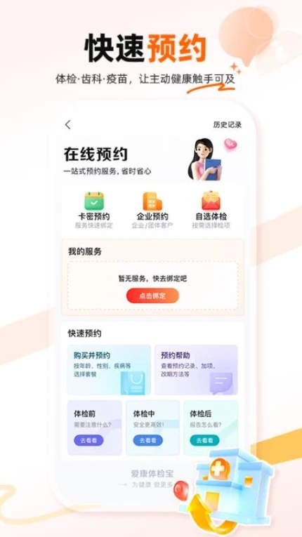 2.线上预约:通过应用预约所需的体检服务,轻松安排体检时间和地点。