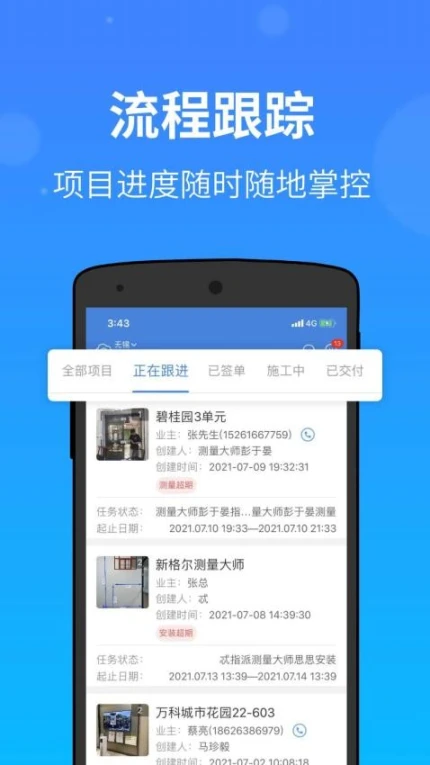 5.能实时跟踪项目流程,用户可随时随地掌握项目进度,把控全过程。
