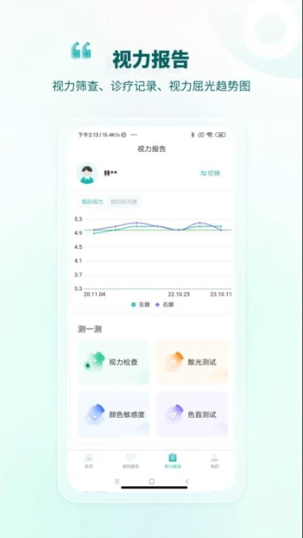 2.报告详细:精准测试视力,生成详细报告,助用户全面掌握个人视力状况。