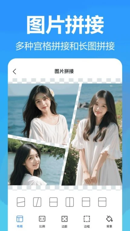 应用提供丰富的拼图模板,用户在进行图片拼接时,可依喜好选择不同模板,轻松完成拼图。