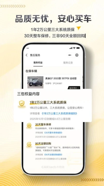 1.专业售后保障,让用户线上下单购车无后顾之忧,享受贴心服务。