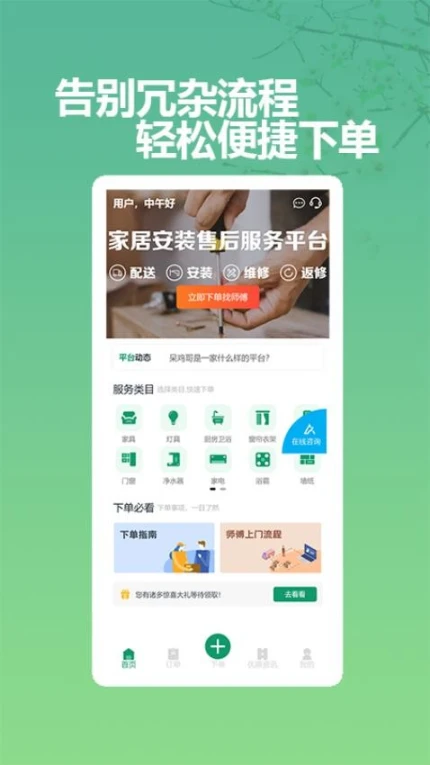 2.便捷高效:商家在线发布订单,平台快速匹配师傅,上门服务高效便捷。