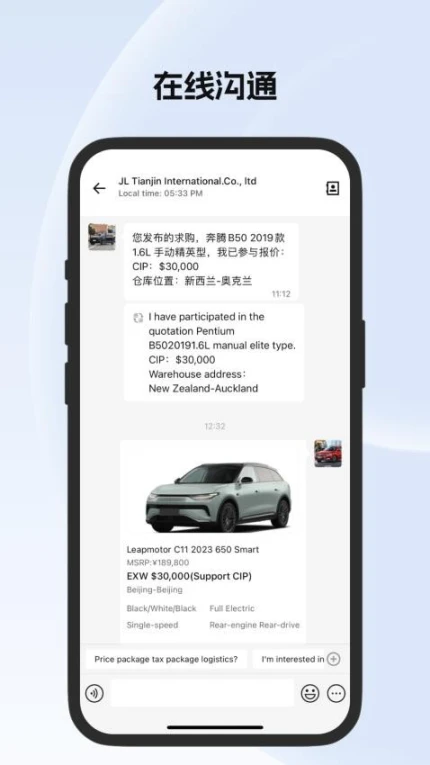 支持实时在线沟通,交易双方可及时交流车辆细节,避免信息滞后。
