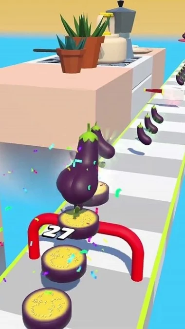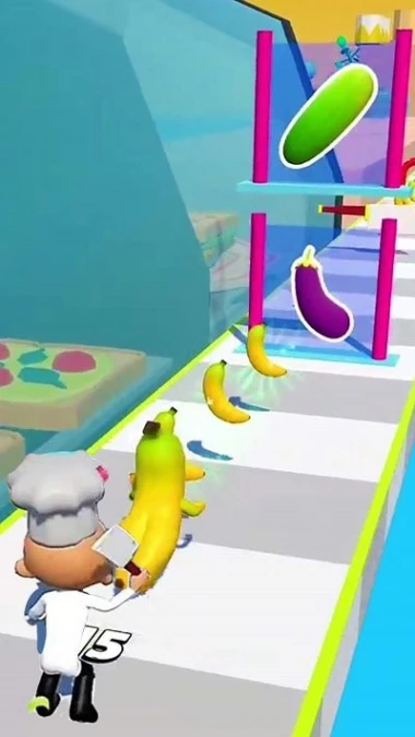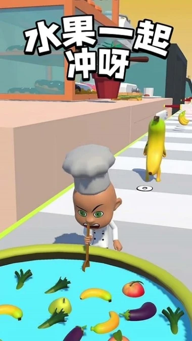 水果一起冲呀是一款别具一格的休闲跑酷游戏。游戏以厨房为背景,水果们化身为可爱的拟人形象,在充满危机的赛道上展开冒险。厨师的菜刀时刻威胁着水果们的安全,玩家需要操控水果躲避菜刀,快速冲向终点。游戏中会出现香蕉、茄子、黄瓜等多种水果蔬菜,后面的关卡还会有更多类型加入,丰富了挑战内容。赛道采用直线型设计,对玩家比较友好,玩家可以在快速躲避操作中增加基础分数,提高排名。