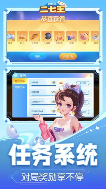 4.设有有趣的任务系统,玩家参与精彩对局,完成任务即可获取丰厚奖励。