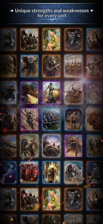 游戏拥有骑兵、长矛兵等多种兵种,每个兵种都有独特技能和属性,增加游戏趣味性。