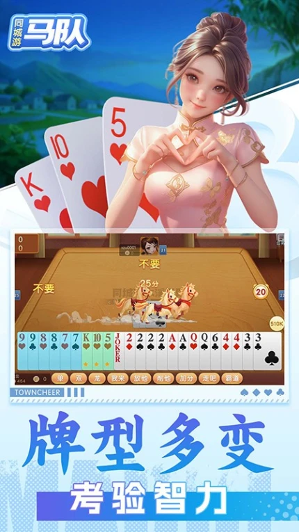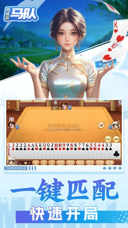 蓝天下载网为您免费提供同城游马队下载,这款源自辽宁本溪的经典棋牌桌游以精致画面与地方特色玩法为核心,融合510K扑克竞技与快速匹配机制,打造轻松畅玩体验。玩家可随时随地加入4人对局,通过多样牌型组合与炸弹策略展开智力对决,每日签到更可领取丰厚奖励。游戏采用明王规则与癞子牌设计,支持实时聊天交友,让传统玩法焕发数字活力。