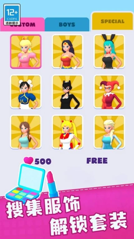 每个关卡对应特定约会场景,需根据主题选择发型、妆容及服饰组合,系统会根据色彩搭配、风格契合度进行智能评分。