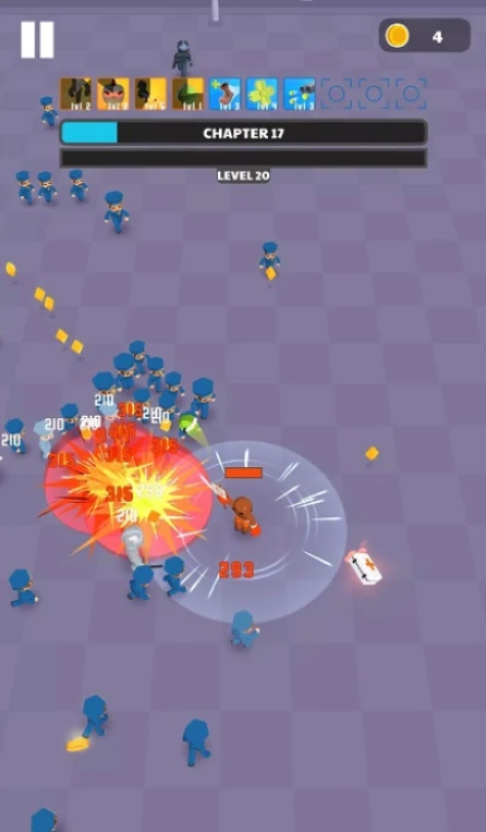 3.探索伤害方法,尽可能活下去,学习伤害警察的新方法并进一步改善打败他们。