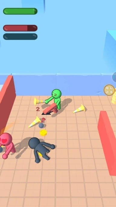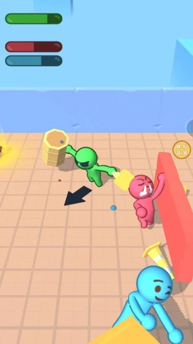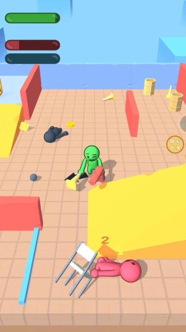 1.竞技人数智能调控,达到上限自动提示,保障公平匹配。 2.角色表情包随战斗状态触发,胜利、受伤等场景展现趣味动画。 3.血量条可视化设计,精准判断敌方状态,制定针对性战术。 4.攻击操作预设多种模式,支持连击、蓄力等进阶技巧组合。 5.皮肤颜色与材质自由搭配,打造个性化角色外观。