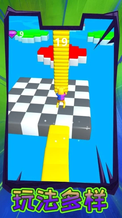 2、动动手指控制角色前进,避开障碍物,收集更多方块。