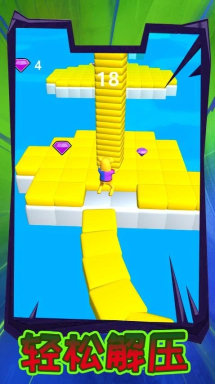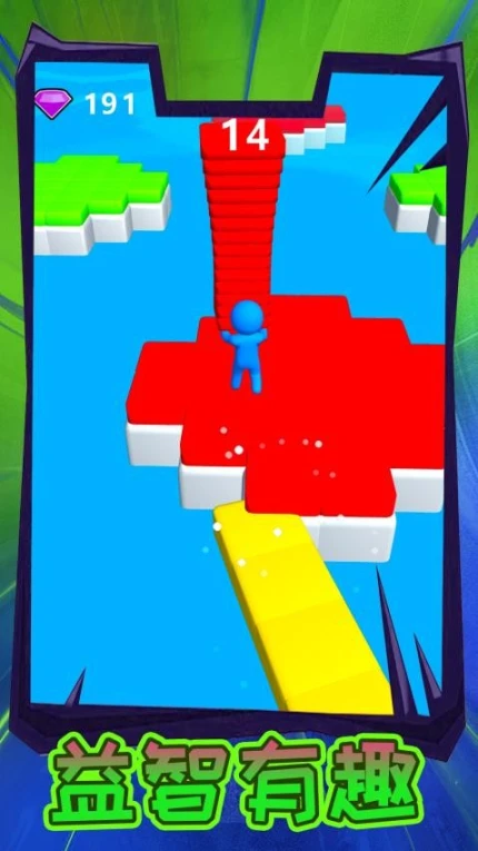 1、玩家收集自己颜色方块,用于建造桥梁,开启冒险之旅。
