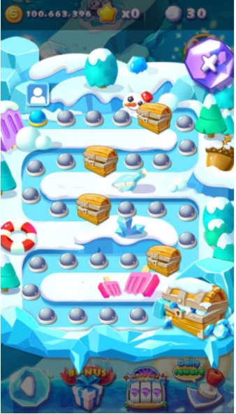 5、玩家移动三个以上相同冰块可消除,在限定步数内完成闯关。