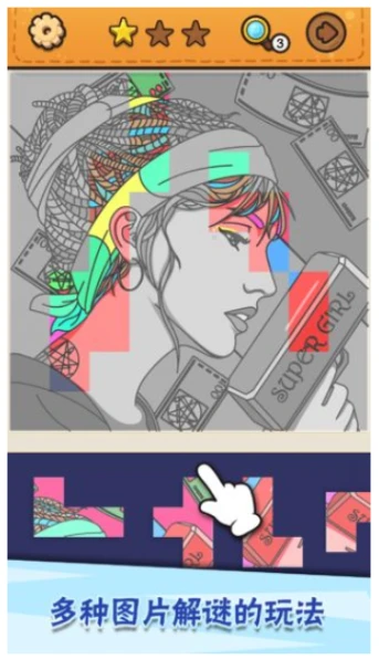 5、体验拼图模式,发挥脑力完成精美插画的拼接。