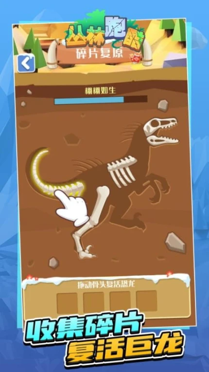丛林跑酷是一款融合收集、跑酷、经营与建造的休闲游戏。玩家在跑酷关卡中收集恐龙化石碎片,通过拼图复活远古生物,同时获取木材扩建恐龙公园。游戏内设多样化的恐龙图鉴,支持合成变异品种,逐步丰富公园生态。跑酷环节融入团队协作对抗怪物,经营系统提供资金收益增长路径,新手引导与真实互动设计提升沉浸感。