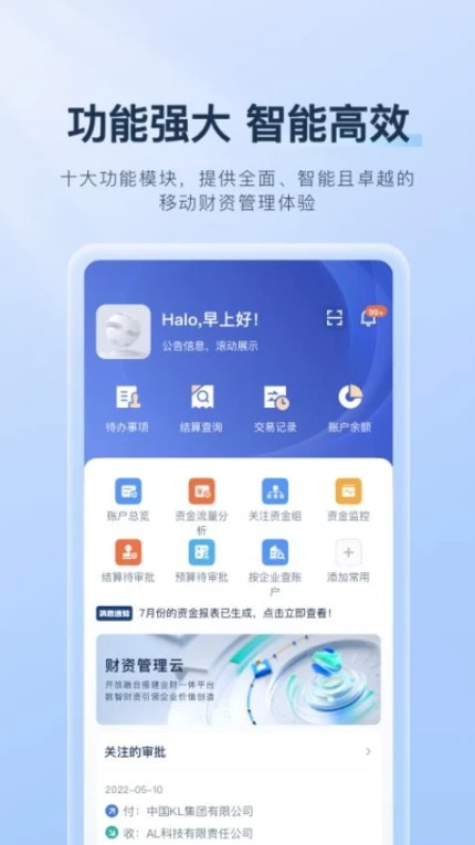 1、打开应用可一键管理企业财资,轻松掌控资金状况。