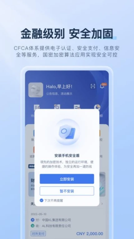 具备金融级安全加固,保障用户账户信息安全,让用户安全可控地使用财资管理服务。