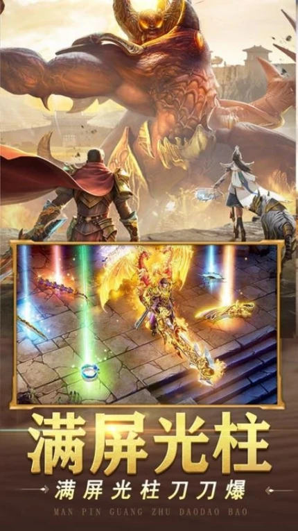 游戏爆率超高,一刀秒杀,全屏炫彩光柱,满地装备可一秒回收背包,收获满满。