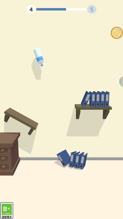 蓝天下载网为您免费提供看我的神操作下载,这是一款以扔瓶子为核心的休闲益智闯关游戏。玩家需通过精准点击控制瓶体翻转角度,引导其沿房间内错综复杂的平台路径完成关卡挑战。游戏场景涵盖客厅、厨房等生活化场景,结合动态轨迹提示与障碍物规避机制,带来充满策略性的趣味体验。随机抽取的截图展示游戏核心玩法: